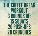 Today exercises are all new. I got them from a Pop Sugar Fitness video Jan sent me. I originally broke the video up into Wednesday and Friday so we were only doing 4 exercises per day, but I just went bak and watched the video again. It’s only 5 minutes and it goes through the entire routine. Instead of just doing the last 4 exercises (our Day 4 exercises. I thought, “Why not do the while video?”