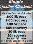 Speed Work: Speed work may always cause a little bit of nerves but as you get more used to it, you will get better at it and it will not be so anxiety inducing. You just have to suck it up and get it done!