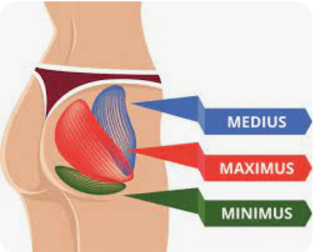 Gluteus Medius — One of the three gluteal muscles, the gluteus medius is located above and to the outside of the gluteus maximus (the largest, roundest part of your butt) and over the gluteus minimus, the trio’s smallest muscle. It’s best known for abduction, or moving the leg away from the body’s midline. But it actually does much more.