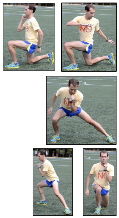 Lunge Series – (5 sets of 1 rep each) – Forward, Forward with Twist, Side, Diagonal, Backwards (1x each way = 1 set)